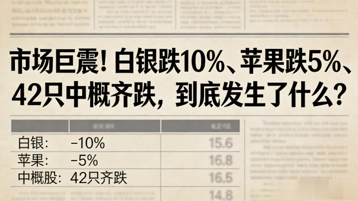 凌晨的金融阛阓,莫得一点暖意,惟有一派惨烈的下降。黄金跳水、白银暴跌超10%、原油重挫、好意思股科技股集体破位,苹果单日大跌5%,更有42只中概股同步下降,险些莫得钞票大略独善其身。许多投资者一醒悟来,账户仍是出现光显波动,不少东说念主心里惟有一个疑问:这波全球钞票暴跌,到底是短期着急,照旧更大疗养的启动?