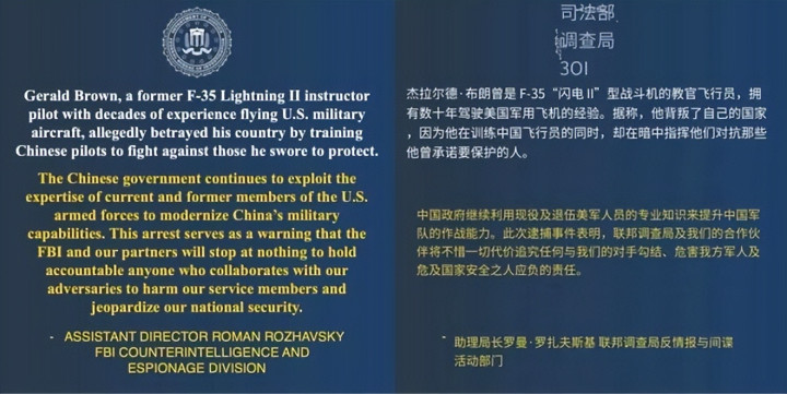 中好意思竞争日趋热烈,好意思国也开动越来越多的以“国度安全”为事理开动,回想时期转动问题,并逮捕推断的连累东说念主。2月25日,好意思国退役翱游员杰拉尔德·埃迪·布朗被捕,他被控从2023年起磨砺中国空军翱游员并历久担任外籍诠释,如今还是被好意思礼貌院的告状。