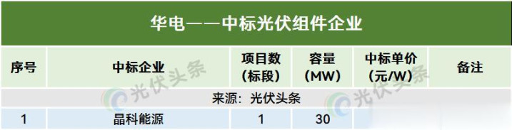 华电在本统计周期共有1个模式(标段)定标,明确界限30MW,晶科动力中标。