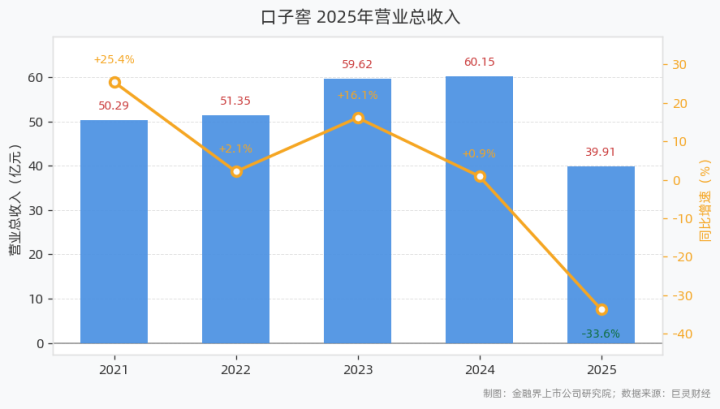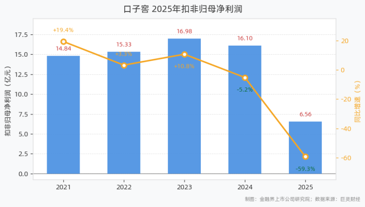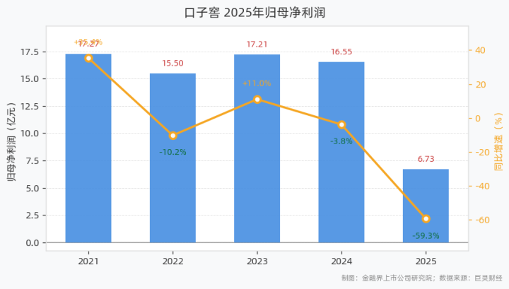 4月22日,口子窖发布2025年年报。讲演露出,2025年公司已毕贸易总收入39.91亿元,同比下滑33.65%;归母净利润6.73亿元,同比下滑59.32%;扣非归母净利润6.56亿元,同比下滑59.27%;基本每股收益1.13元,加权平均净钞票收益率为6.43%。