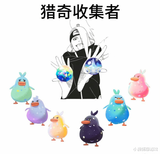 猎奇网罗者:迪达拉看了都得说一句专科,这类玩家的东说念主生信条即是:万物齐可网罗,莫得我握不到的宠物!就像迪达拉千里醉艺术爆炸雷同,他们千里醉于游戏里的各式特等、仙葩宠物,尤其是那些造型私有的异色鸭鸭,从崭新薄荷绿到巧妙星空黑,每一只都要收入囊中。他们不在乎战力,不在乎 PVP,只消图鉴没满,就历久在握宠的路上,背包里全是各式奇奇怪怪的宠物,主打一个 “万物齐可盘”!