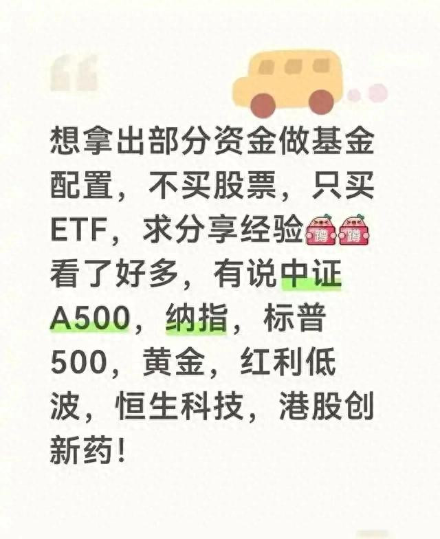 最近后台收到最多的留言,全是对于ETF树立的。民众的见解独特的一致:不想再碰个股了,踩过雷、吃过亏,也没元气心灵天天盯着财报和音问面,就想拿出一部分闲钱,只靠ETF作念钞票树立,稳稳赚点钱。可真到选品的时刻,又全懵了,中证A500、纳指、标普500、黄金、红利低波、恒生科技、港股革命药,别东谈主推选的品种列了一大串,越看越乱,不知谈哪个该打底,哪个该小仓位试试,怕买散了赚不到收益,又怕重仓错了扛不住波动,纠结来纠结去,钱放着没动,契机也错过了。